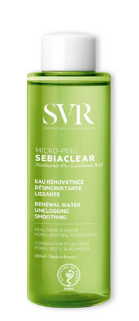 SEBIACLEAR MICRO-PEEL es un nuevo concepto, un agua para el cuidado facial anti-imperfecciones que alisa y desobstruye los poros, formulada con un 90% de ingredientes de origen natural y concentrada en activos eficaces: